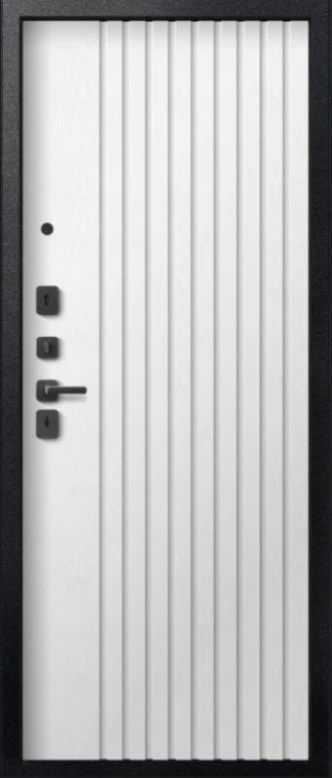Надежная входная Дверь V-15 Черный муар + Бетон темный - Софт ясень белый премиум класса по цене 39 300 руб. Большая толщина стали защитит от проникновения в ваш дом, квартиру или коттедж. Используется очень качественная фурнитура: замки, цилиндры, ручки, защелки. Покрытие и отделка двери изготовлено под внимательным контролем производителя. Дверь имеет долгий срок службы и гарантию.